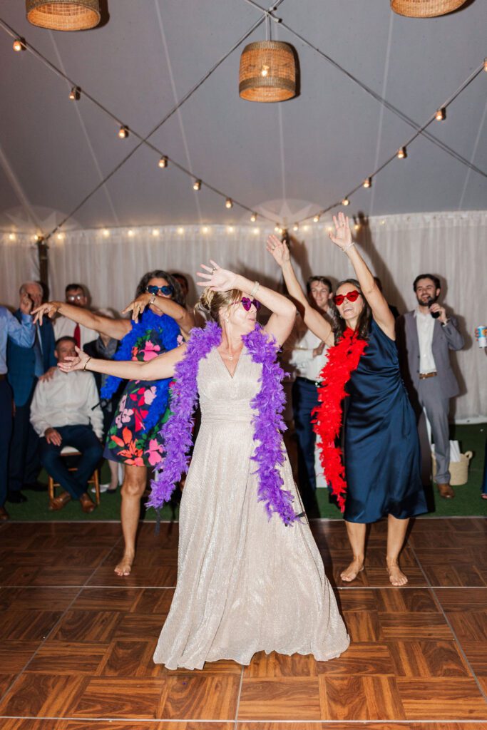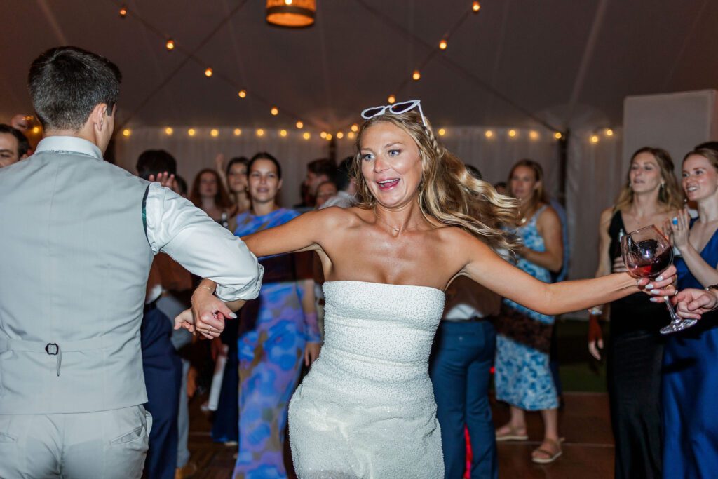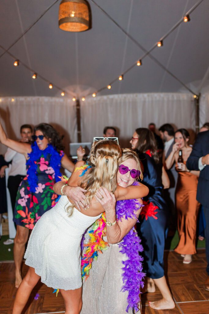 Once cocktail hour began, the energy shifted from tender to pure joy. The tented reception was stunning — woven lanterns, soft string lights, and natural greenery everywhere. Haley’s mom even surprised her with a fun choreographed dance to ABBA that had everyone on their feet laughing and cheering!