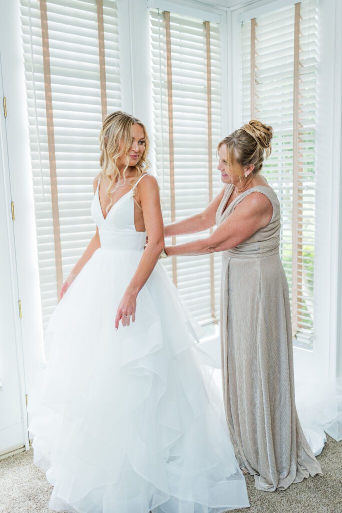 Haley got ready surrounded by her bridesmaids, all wearing the prettiest mix of green tones that complemented the vineyard setting perfectly. Her gown — layered, flowy, and effortlessly elegant — was truly a show-stopper. She shared a sweet, emotional moment with her mom before heading out for one of my favorite moments of the day: their reverse first look.